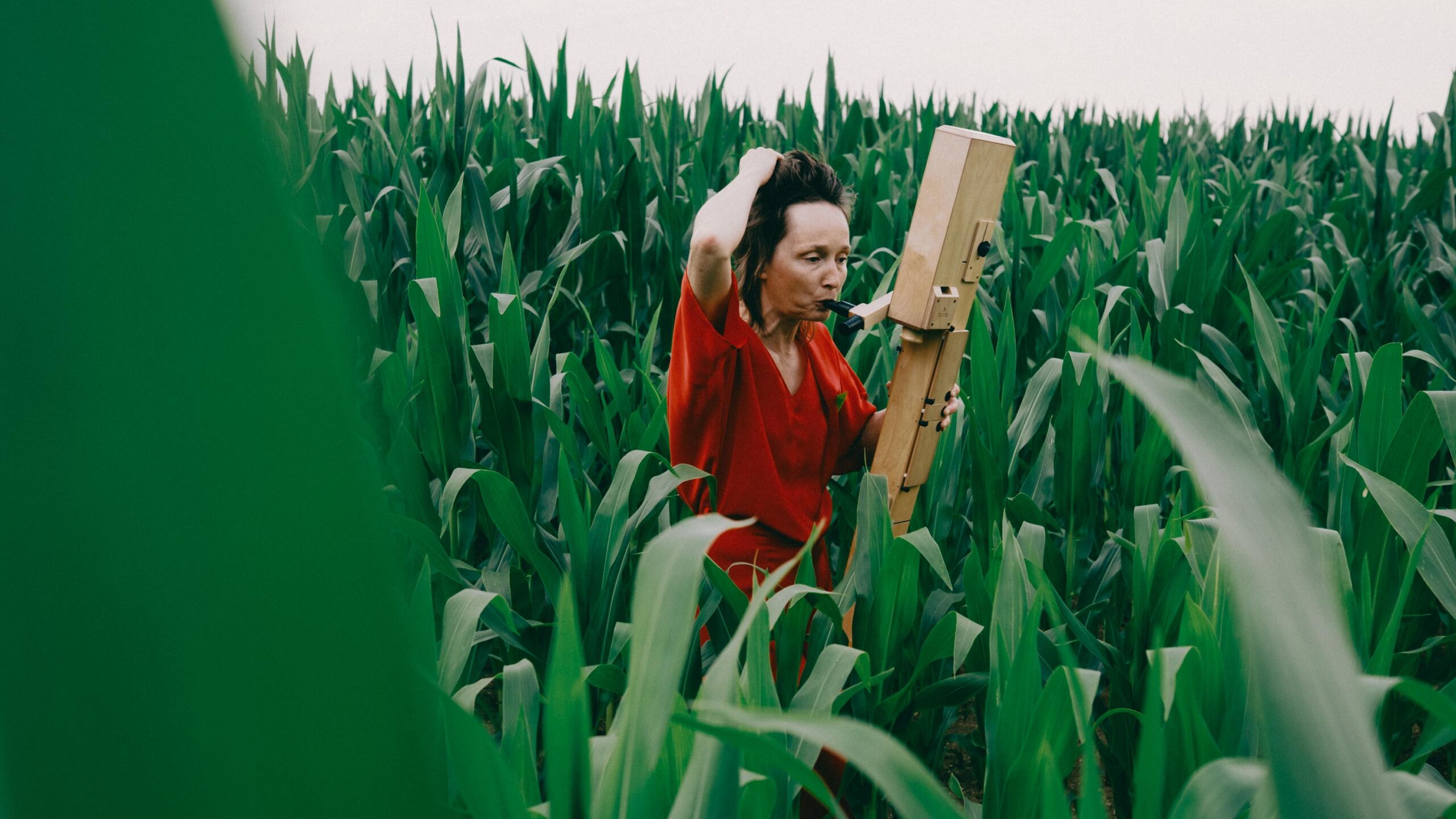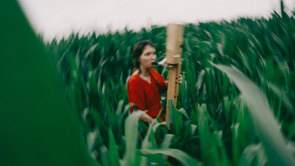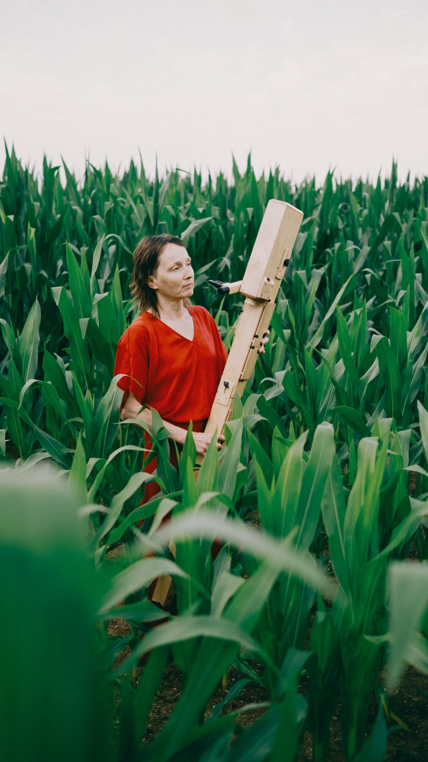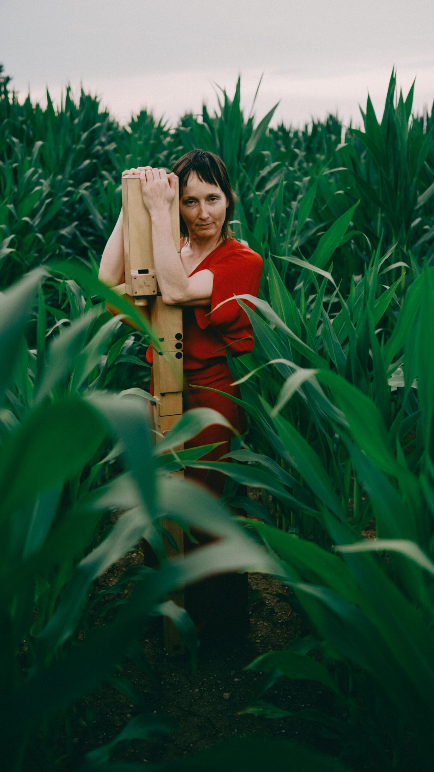Ich wollte Elisabeth in einen Kontext setzen, der mit Musik erst mal nichts zu tun hat – und genau dadurch Spannung erzeugt. Abgemähtes Kornfeld, Baggersee, Mais. Ihre Kleidung immer im Kontrast zur Umgebung. Dieses bewusste Reiben zwischen Mensch, Instrument und Ort öffnet den Blick – und macht Bilder, die hängen bleiben. Fotografiert mit einer Fuji X-Pro 3 und einem TTArtisan 35mm – eine Kombination, die den Bildern genau den analogen, weichen Look gibt, den sie brauchen.