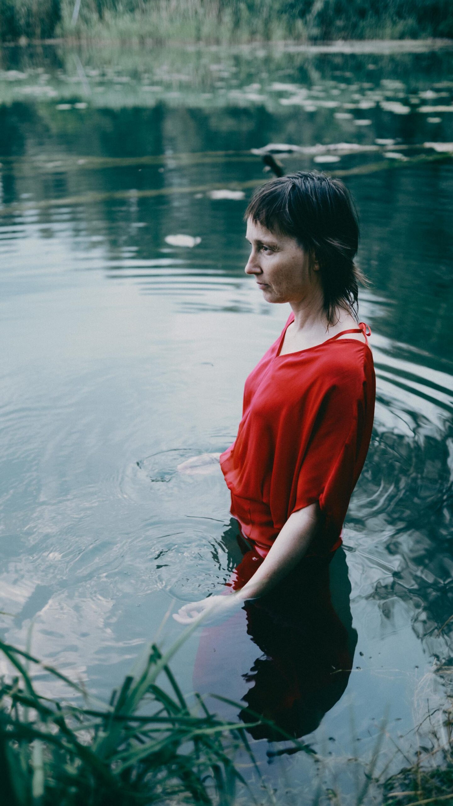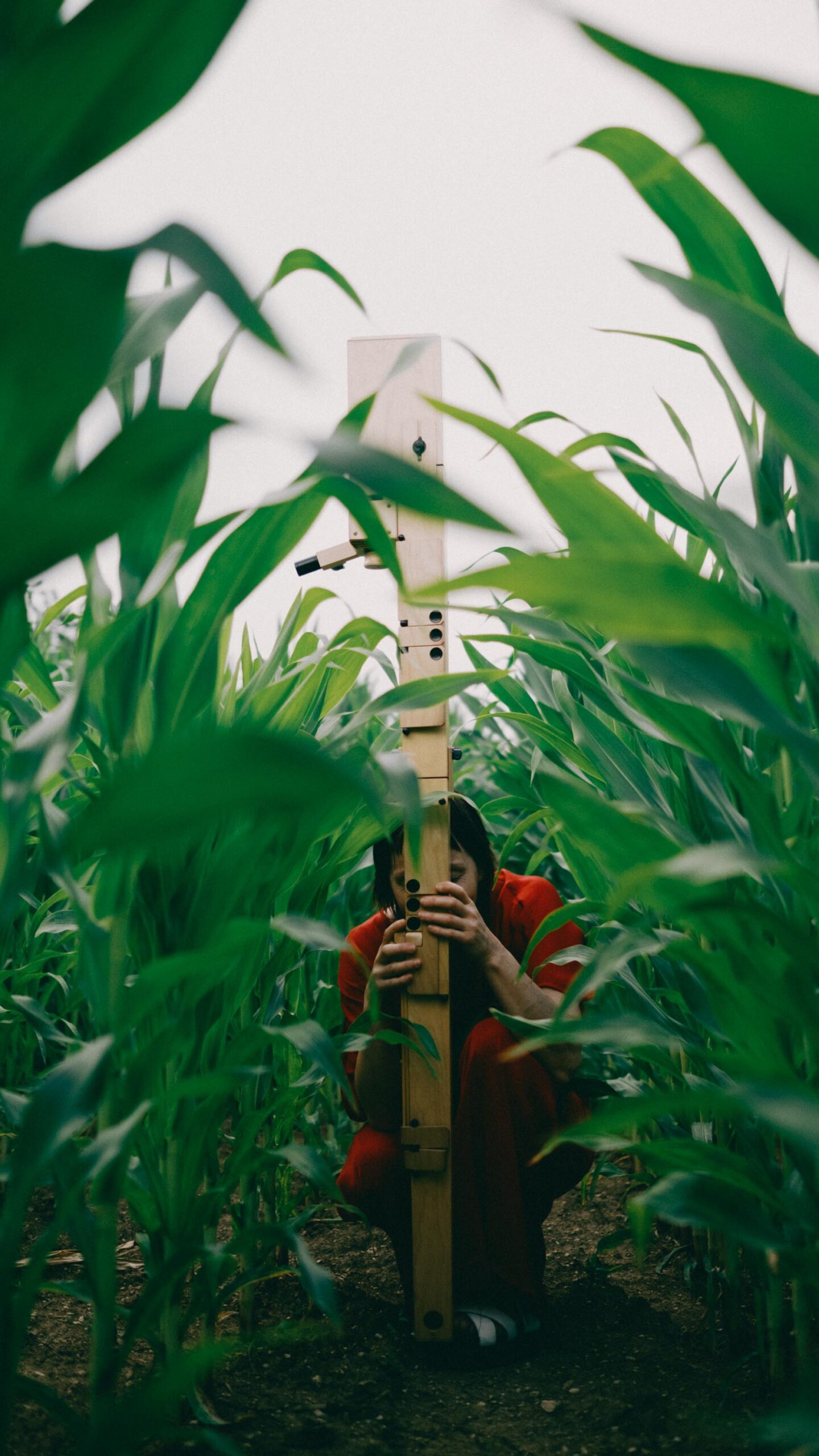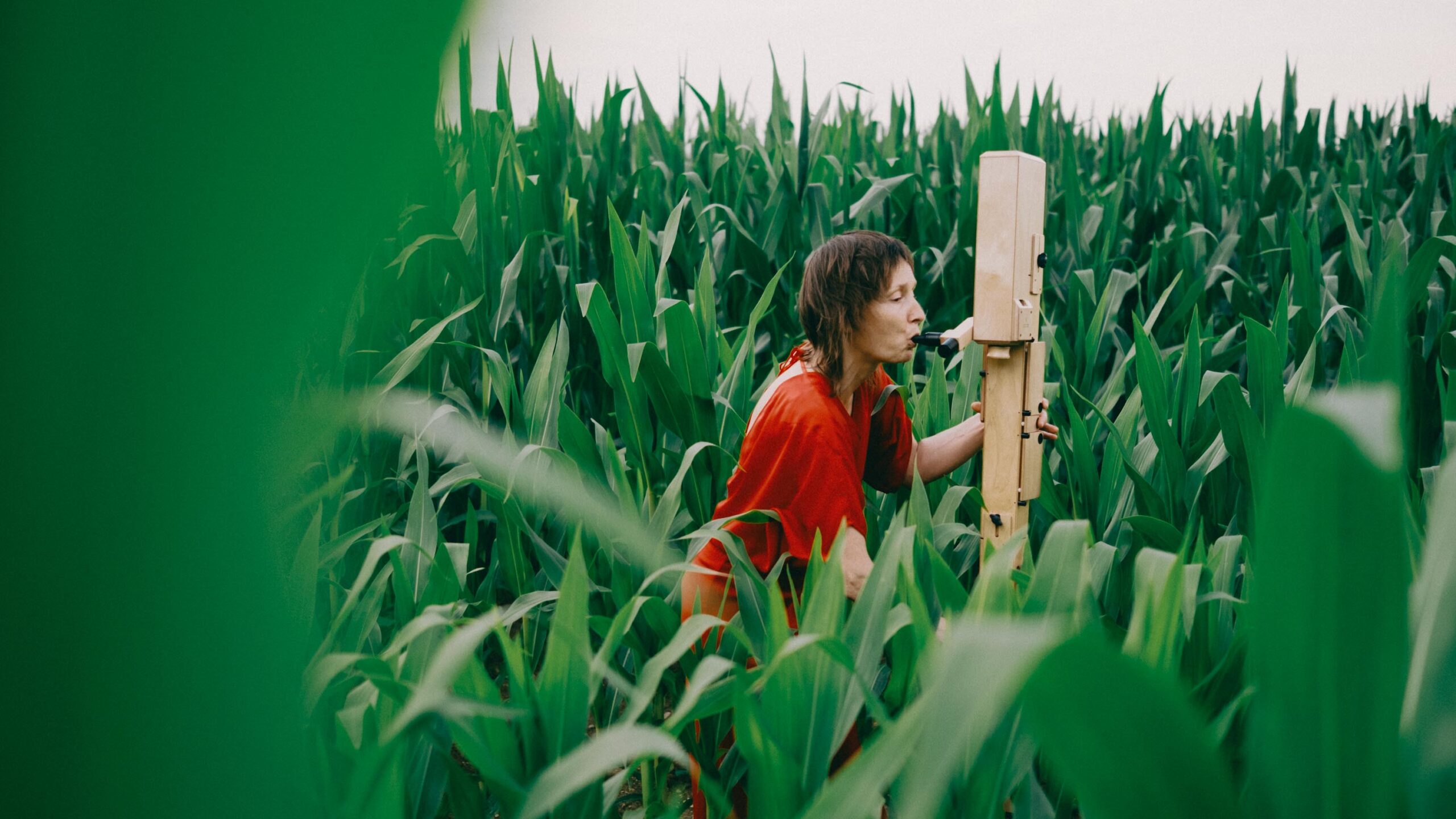 Ich wollte Elisabeth in einen Kontext setzen, der mit Musik erst mal nichts zu tun hat – und genau dadurch Spannung erzeugt. Abgemähtes Kornfeld, Baggersee, Mais. Ihre Kleidung immer im Kontrast zur Umgebung. Dieses bewusste Reiben zwischen Mensch, Instrument und Ort öffnet den Blick – und macht Bilder, die hängen bleiben. Fotografiert mit einer Fuji X-Pro 3 und einem TTArtisan 35mm – eine Kombination, die den Bildern genau den analogen, weichen Look gibt, den sie brauchen.